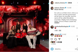 體育資訊12月25日訊 巴西前鋒菲爾米諾更新社媒動(dòng)態(tài),曬出與家人合照慶祝圣誕節(jié)。