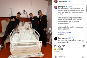 體育資訊9月25日訊 今日加維更新社媒,曬出自己手術(shù)后隊(duì)友前往醫(yī)院探望的合照,并配文: