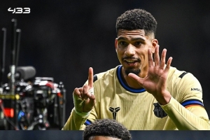 阿勞霍此役為巴薩頭球破門,他進(jìn)球后做出6號(hào)手勢(shì)致意加維,后者接受膝蓋手術(shù)將長(zhǎng)期缺席。