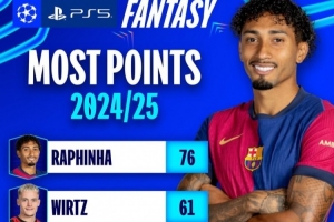體育資訊1月24日訊 歐冠小組賽階段第7輪比賽已經(jīng)完賽,歐冠官方也統(tǒng)計(jì)了本賽季球員表現(xiàn)積分情況,拉菲尼亞領(lǐng)跑。
