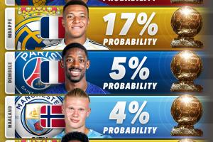 體育資訊09月26日訊 外國媒體SCORE90根據(jù)相關(guān)機構(gòu)賠率,列出了2026年金球獎獲獎概率,其中巴薩前鋒亞馬爾以18%的概率領(lǐng)跑。