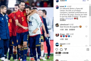 體育資訊9月27日訊 布斯克茨將在本賽季結(jié)束后退役,他在西班牙國(guó)家隊(duì)的隊(duì)友科克社媒發(fā)文致敬。