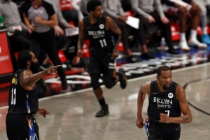 布魯克林籃網(wǎng)隊(duì):在2020-21賽季,當(dāng)杜蘭特和歐文健康回歸后,籃網(wǎng)隊(duì)通過交易得到了詹姆斯-哈登,組成了一個進(jìn)攻火力強(qiáng)大的三巨頭。然而,由于傷病問題,他們在常規(guī)賽中只一起打了8場比賽。