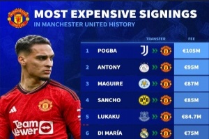體育資訊1月24日訊?德轉(zhuǎn)盤點了曼聯(lián)引援金額的歷史top10排行,這10筆交易,你認為有哪些是值得的?