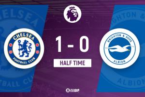 上半場傷停補時2分鐘,半場結(jié)束,切爾西暫1-0布萊頓。