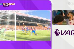 體育資訊09月28日訊 英超第6輪,水晶宮vs利物浦。比賽第87分鐘,基耶薩替補(bǔ)破門為利物浦一度1-1扳平比分,VAR檢查了此球過程中薩拉赫的疑似手球,并確認(rèn)進(jìn)球有效。