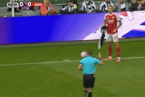 阿森納客戰(zhàn)紐卡第28分鐘,阿森納獲得前場(chǎng)左路邊線(xiàn)球,卡拉菲奧里從場(chǎng)邊撿了毛巾準(zhǔn)備擦球,這位邊后衛(wèi)想擲出大力邊線(xiàn)球。不過(guò)當(dāng)值主裁吉萊特不允許這么做,他從卡拉菲奧里手上拿走毛巾,并扔至場(chǎng)外。