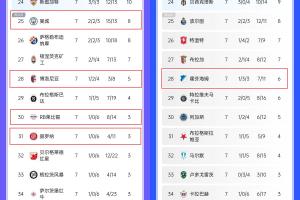 體育資訊01月24日訊 歐冠與歐聯(lián)的比賽前7輪結(jié)束,目前處于淘汰區(qū)的五大聯(lián)賽球隊共有6支。