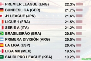 體育資訊9月29日訊 CIES盤點各聯(lián)賽高速跑動距離占比排名,英超居首,德甲第二,西甲僅第八。(高速跑動定義:>15公里/小時)