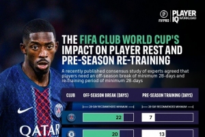 FIFPRO指出,根據(jù)相關(guān)研究,球員賽季之間的休賽期建議為28天,而季前訓練時間也建議為28天,但受到世俱杯的影響,球員們根本得不到應有的休息時間。