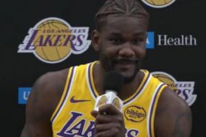 體育資訊09月30日訊 今天,湖人新援中鋒艾頓參加了球隊媒體日活動。