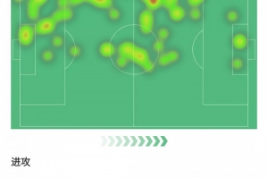 射門1次、射偏1次、丟失球權(quán)6次、預(yù)期進球0.12、錯失進球1個