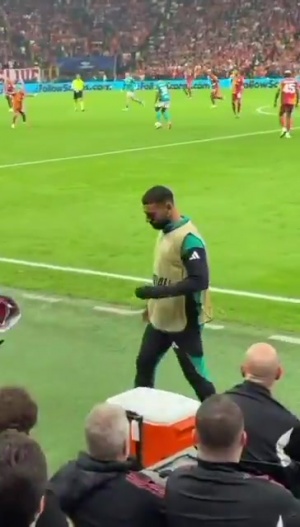 當(dāng)利物浦控球時(shí),現(xiàn)場(chǎng)55000加拉塔薩雷球迷爆發(fā)出巨大噓聲,薩拉赫被拍到被噓聲驚擾,甚至捂住耳朵的畫(huà)面。