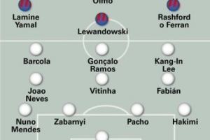 在萊萬多夫斯基或費(fèi)蘭-托雷斯的懸念之外(也不排除兩人同時(shí)上場),另一個(gè)焦點(diǎn)在后防,庫巴西和埃里克-加西亞是熱門人選,除非阿勞霍再次首發(fā)。
