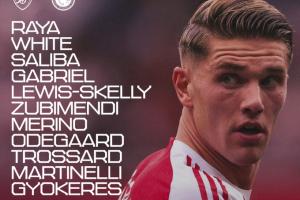 阿森納vs紐卡首發(fā):1-拉亞、3-莫斯克拉、6-加布里埃爾、12-廷伯、33-卡拉菲奧里、36-蘇維門迪、41-賴斯、10-埃澤、7-薩卡、14-約克雷斯、19-特羅薩德