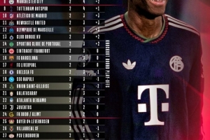 兩戰(zhàn)全勝的球隊(duì)包括拜仁、皇馬、巴黎、國(guó)米、阿森納、卡拉巴赫,而拜仁與皇馬同為6個(gè)凈勝球,拜仁以多進(jìn)一球優(yōu)勢(shì)領(lǐng)跑。
