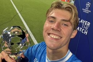 體育資訊10月02日訊 那不勒斯本輪歐冠2-1葡體,霍伊倫雙響,賽后被評(píng)為全場最佳!賽后,歐冠官方曬出了霍伊倫和MVP獎(jiǎng)杯的自拍。