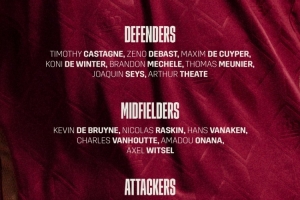 后衛(wèi):卡斯塔涅(富勒姆),德巴斯特(葡體)、德屈佩(布萊頓)、德溫特(AC米蘭)、梅切勒(布魯日)、穆尼耶(里爾)、西斯(布魯日)、泰特(法蘭克福)