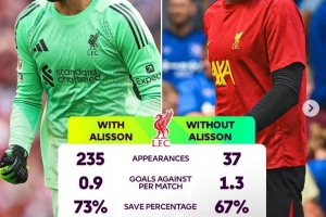 阿利森出場(chǎng)vs缺戰(zhàn)