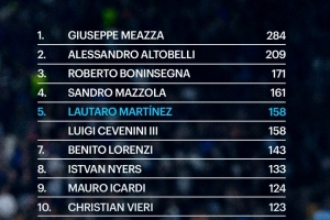 據(jù)國米官方統(tǒng)計(jì),勞塔羅為國米攻入158球,排名隊(duì)史射手榜第5位。