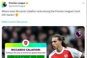 英超官方賽后曬出了卡拉菲奧里的觸點圖,并發(fā)問:卡拉菲奧里在英超最佳左后衛(wèi)排名第幾?