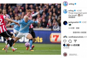 哈蘭德社媒曬出比賽照片慶祝勝利,配文:“重要的三分,咱們休賽期之后見(jiàn)!”