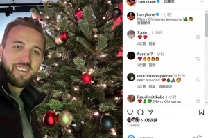 體育資訊12月25日訊 拜仁前鋒凱恩更新社媒動態(tài),曬出與圣誕樹的合照。
