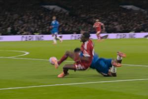 利物浦隊因里斯·詹姆斯對伊薩克的犯規(guī)動作要求判罰點球,但裁判吹罰的是紅軍前鋒犯規(guī),而非點球。