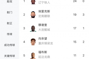 體育資訊10月6日訊 中甲聯(lián)賽25輪戰(zhàn)罷,射手榜方面,本輪雙響的姆本扎24球領(lǐng)跑,本輪分別進(jìn)球的埃里克斯和向余望分居第二和第四位。
