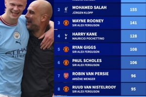 德轉(zhuǎn)盤點(diǎn)同一主帥治下球員進(jìn)球榜:亨利175球居首,薩拉赫155球