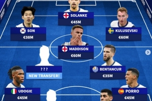中場:?、麥迪遜(6000萬)、本坦庫爾(3500萬)