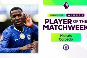 體育資訊10月7日訊 英超官方消息,切爾西中場凱塞多當選英超第7輪最佳球員。