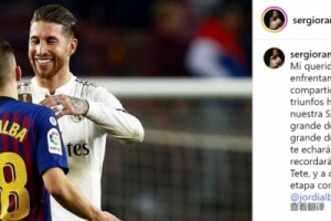 體育資訊10月8日訊 西班牙邊衛(wèi)阿爾巴將在本賽季結(jié)束后退役,拉莫斯社媒發(fā)文致敬。