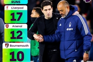 體育資訊1月25日訊 英超官方統(tǒng)計(jì)了各隊(duì)目前連續(xù)不敗的場(chǎng)次,并列出英超連續(xù)不敗場(chǎng)次排名,利物浦17場(chǎng)居首,阿森納12場(chǎng)次席,排名第三、第四的伯恩茅斯和諾丁漢森林本輪將展開(kāi)較量。