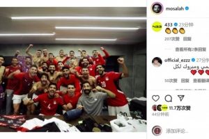 薩拉赫社媒曬出全隊(duì)在更衣室的合照,慶祝球隊(duì)晉級(jí)2026年世界杯。