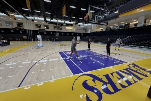 體育資訊10月10日訊 昨日,湖人記者Jovan Buha曬出湖人訓(xùn)練場的照片,并提到在三分線內(nèi)多了一條“兩分線”。