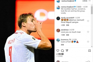 霍伊倫社媒曬出比賽照片,慶祝球隊取勝,配文:“我們遠(yuǎn)征客場,享受比賽,轟入6球,拿下勝利并領(lǐng)跑小組!太美妙了。”