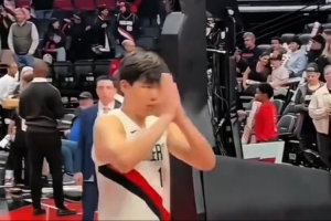 賽后,開拓者主場(chǎng)球迷們呼喊楊瀚森的名字予以支持,楊瀚森雙手合十表示感謝。