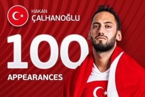 恰爾汗奧盧自2013年開始為土耳其效力,在這100場比賽中貢獻(xiàn)21球18助攻。