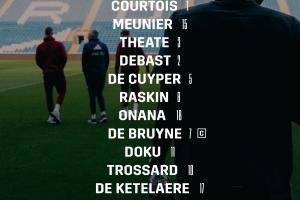 1-庫爾圖瓦、15-穆尼耶、3-泰特、2-德巴斯特、5-德屈佩、8-拉斯金、18-阿馬杜-奧納納、7-德布勞內、11-多庫、10-特羅薩德、17-德凱特拉雷