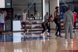 體育資訊10月15日訊 在今天的76人隊(duì)內(nèi)訓(xùn)練中,恩比德與隊(duì)友輪流進(jìn)行一對(duì)一的單挑。