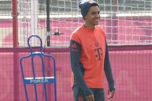周二出現(xiàn)在訓(xùn)練場(chǎng)時(shí),穆西亞拉笑容格外燦爛,看得出來(lái)他已經(jīng)迫不及待想要重返球場(chǎng)了。