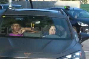 亞馬爾女友妮基·妮可今日開車送男友前往巴薩基地訓(xùn)練,據(jù)此前報道,18歲的亞馬爾仍在學(xué)駕照。