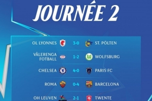 女足歐冠聯(lián)賽階段第二輪部分比賽結(jié)果: