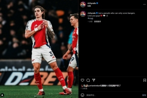 體育資訊1月26日訊 本輪英超比賽中,十人作戰(zhàn)的阿森納1-0頑強(qiáng)擊敗狼隊(duì),卡拉菲奧里打進(jìn)制勝球。賽后,他更新社媒慶祝勝利。