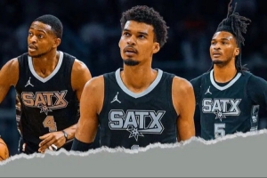 文班亞馬新秀年,搭檔的后衛(wèi)是瓊斯、韋斯利和布蘭漢。