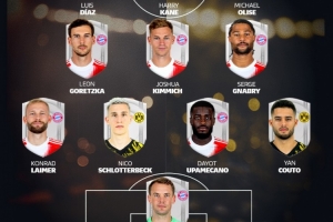 體育資訊10月18日訊 本輪德甲將上演焦點對決拜仁對陣多特,德甲官方也通過球迷票選評選出雙方最佳11人陣容,其中凱恩領(lǐng)銜拜仁9人在列,具體如下: