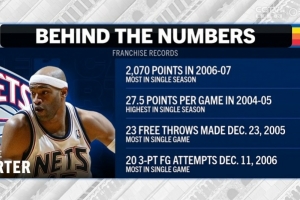 卡特在籃網(wǎng)生涯的紀錄如下: