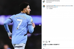 體育資訊1月26日訊 英超第23輪,曼城主場(chǎng)3-1戰(zhàn)勝切爾西,馬爾穆什上演首秀。賽后,他更新了社媒動(dòng)態(tài)。