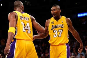 2010年6月17日,湖人和凱爾特人在總決賽中迎來生死戰(zhàn)。比賽到第四節(jié)雙方殺得難解難分,還剩1分鐘時科比傳球給阿泰斯特,后者投進了鎖定勝局的三分,幫助球隊最終捧起總冠軍獎杯。是役,科比拿下23分,阿泰斯特貢獻全隊第二高的20分。綠軍雖然首發(fā)五虎全部得分上雙,但還是遺憾落敗。